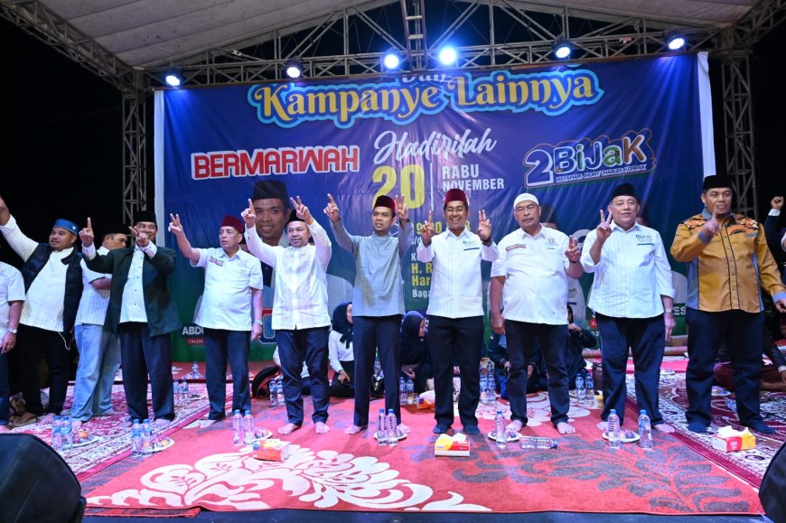 Beritaharian.co.id, Rokan Hilir -- Calon Gubernur Riau Abdul Wahid dan Ustadz Abdul Somad kembali melakukan safari politik, tepatnya di Kota Bagan Batu, Kec. Bagan Sinembah, Rabu (20/11/2024). Tampak hadir puluhan ribu warga memadati lokasi kampanye, kegiata ini juga digelar bersamaan dengan paslon Bupati Rokan Hilir Bistamam-Jhony Charles sebagai tandem pilkada di Rokan Hilir